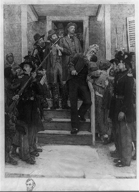 "I have been whipped, as the saying is," Brown acknowledged to his wife, "but I am sure I can recover all the lost capital occasioned by that disaster; by only hanging a few moments by the neck; and I feel quite determined to make the utmost possible out of a defeat." The legend of John Brown's hanging says that he stopped to kiss a "negro child" on the way to the gallows. The "Last Moments of John Brown" by Thomas Hovenden