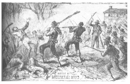 At Millikens Bend on June 7, 1863, some Illinois cavalrymen sneered, "A man ud be a dam fool to try to make soldiers out ah niggers. . . . Any one ough to Know a nigger wont fight: they'r running now. before they seen a reb. . . . We will show them how it is done if we find any of them." Several minutes later the Illinois horsemen raced past in retreat, pursued closely by the Confederates. The black company then rose up and delivered a volley that drove the Rebels back and saved the day." "The white or true Yankee portion ran like whipped curs almost as soon as the charge was ordered." while the blacks resisted with "considerable obstinacy," yet they could not hold the levee." General McColloch ( J. T. Glatthaar, Forged in Battle)