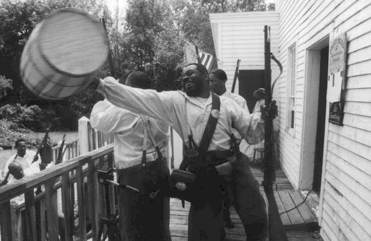 Big Bob & his Boy's NANCY WHITE " The siege of Washington, N.C., had carried consternation among the planters of the surrounding country, and contrabands were flocking in by hundreds. when, just at day-break one morning, a band of seventeen came to the shore, and hailed the nearest gunboat. The blacks were soon taken on board, when it was ascertained that they had traveled fifty miles the previous night, guided by their leader, a negro whom they called "Big Bob." This man was without a drop of Anglo Saxon blood in his veins, if color was a true index. It was also soon known that he was a preacher, or had been, among his fellow-slaves. These men all expressed a desire to be put to work, and, if allowed, to fight for " de ole flag." " Big Bob " sported a suit of rebel gray, which his fellow-slaves could not ; and the way in which he obtained it was rather amusing. In the region from which they escaped, the blacks were being enrolled in the rebel army ; and Bob and his companions were taken, and put under guard, preparatory to their being removed to the nearest military post. Bob, however, resolved that he would not fight for the rebel cause, and induced his comrades to join in the plan of seizing the guard, and bringing him away with them ; which they ' did, Bob claiming the rebel soldier's clothes, when that individual was dismissed, after a march of thirty miles from their home. Bob made an amusing appearance, being above six feet in height, and dressed in a suit, the legs of the pants of which were five or six inches too short, and the arms of the coat proportionally short. A few days after the arrival of the contrabands, their services were needed in an important expedition in the interior. These negroes, upon being told what was wanted of them, although knowing that the enterprise would be attended with the greatest danger, and would require the utmost skill, volunteered their services, and, upon being furnished with arms and implements, immediately started upon the expedition. Being landed upon a point some little distance from Washington, they started with a determination to accomplish the object for which they had been sent. There objective was to destroy the production facilities at the Mill Having finished their mission, which was the destroying of The Mill, breaking up fifty salt-kettles, a large tannery, and liberating twenty-three slaves, some of whom they armed with guns taken in their fight with the rebels, Bob commenced retracing his steps. The return was not so easily accomplished, for the enemy were well distributed on the line between them and the gunboats. After getting within four miles of the fleet, and near Point Rodman, a fight took place between the colored men and the rebels, which lasted nearly an hour. The blacks numbered less than forty; while the whites were more than one hundred...Bob answered, “No, I never surrenders.” And then he cried out; “Come on, boys! ef we’s captud, we’s got to hang; and dat’s a fack. They charge the Confederates firing their guns.